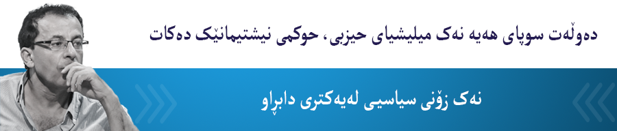 ئەم دۆخی بە حاشییەکردنەی نوخبەکان و ئەم دۆخی بە رەعیەتکردنەی کۆمەڵگا، وادەکات «کۆمەڵگا»یەک دروستببێت لە قۆناغی بەر لە دروستبوونی دەوڵەتدا بژی. بەزۆر مانا ئەوەی لە سێ دەیەی رابردوودا لە هەرێمدا روویداوە، گەڕاندنەوەی کۆمەڵگای ئێمەیە بۆ قۆناغی بەر لە دروستبونی دەوڵەت. کە باس لە دەوڵەت دەکەم باس لە ئۆرگانێک دەکەم کە بەناوی مافەوە قسەدەکات نەک بەنای هەقیقەتەوە. دەوڵەت نوێنەری هیچ هەقیقەتێک نییە، بەڵکو پارێزەی سەرەکیی وژمارەیەکی مافە. بۆ زۆرینەی هەرەزۆیشرمان ئاشکرایە، رەنگە بۆ خودی نوخبە بەحاشییە کراوەکەیش خۆیەوە، ئەوەی لە هەرێمدا هەیە و کاردەکات، دەوڵەت نییە بەمانا ئاسایی مۆدێرنەکەی دەوڵەت، بەڵکو، وەک ووتم، ئیمارەتی خێزانیی و بنەماڵەییە کە بە هەموو شێوەیەک رێ لە چوونەژورەوەی کۆمەڵگای ئێمە بۆناو قۆناغی دەوڵەت، دەگرێت.