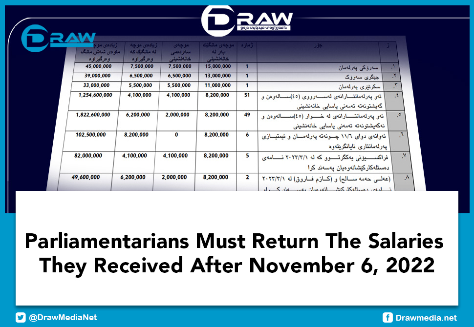 According to the decision of the Federal Court, the Kurdistan parliament has been illegal for seven months since November 6, 2022, which means the parliamentarians must return the salaries they received in the past 6 month.