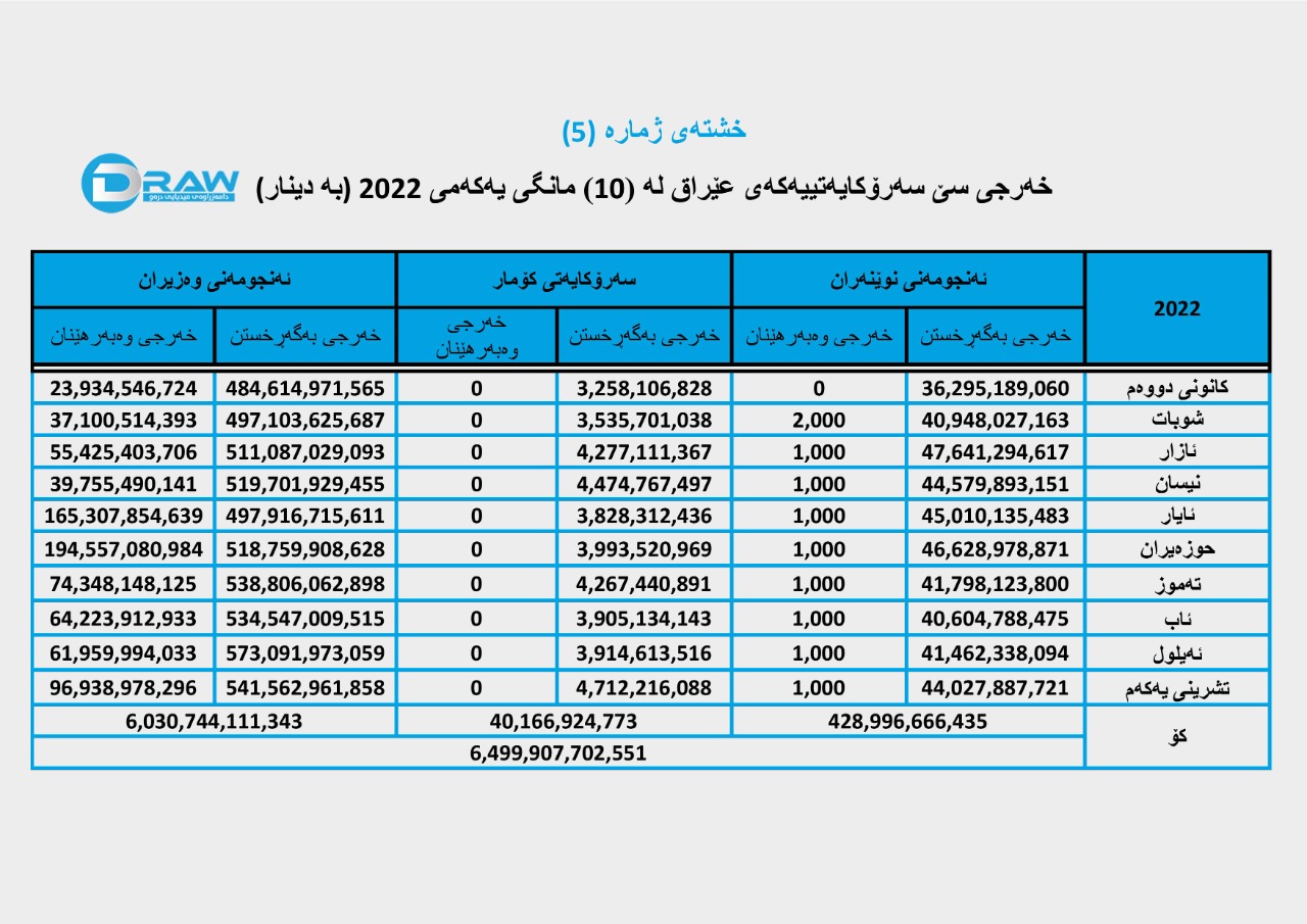 بۆ وردەکاری خەرجی سێ سەرۆکایەتییەکە لە دە مانگی یەکەمی ساڵی (2022) بڕوانە (خشتەی ژمارە (5)).