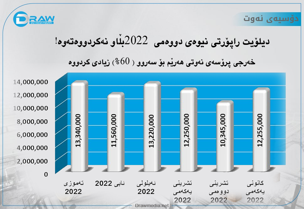 لەگەڵ ئەوەی زیاتر لە (6) مانگ تێپەڕیوە، بەڵام کۆمپانیای دیلۆیت هیچ زانیارییەکی لەبارەی نەوتی هەرێمەوە بڵاو نەکردووەتەوە لە کاتێکدا بەپێی زانیارییەکانی درەو لە نیوەی دووەمی 2022؛ بەهۆی هەوڵەکانی بەغدا و بڕیارەکانی دادگای فیدراڵییەوە، فشاری کۆمپانیا بیانییەکانی نەوت و کڕیارانی نەوتی هەرێم بۆ سەر حکومەتی هەرێم زیادی کردووە، حکومەتی هەرێم ناچارکراوە بە خەرجی زیاترو هەزانتر فرۆشتنی نەوتی هەرێم، ئەمەش بووتە هۆی بەرزبوونەوەی خەرجی پرۆسەی نەوت لە (56%)ەوە بۆ سەروو (60%)، جگە لە دابەزینی داهاتی گشتی نەوت بەهۆی داشکاندنی زیاتری نرخی نەوتی هەرێم لە بازاڕەکانی جیهان.