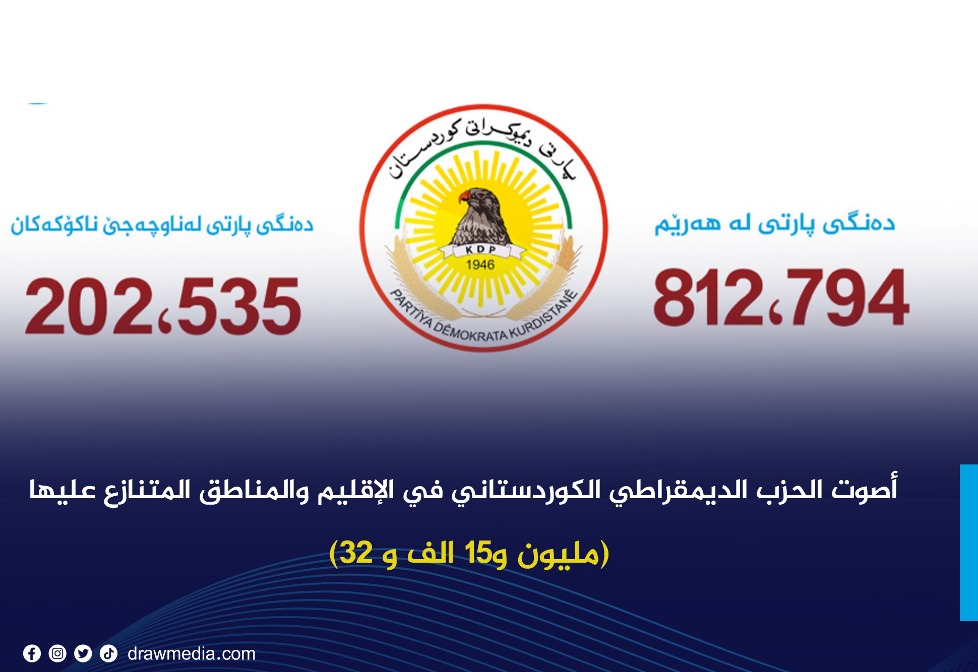 أصوت الحزب الديمقراطي الكوردستاني في الإقليم والمناطق المتنازع عليها