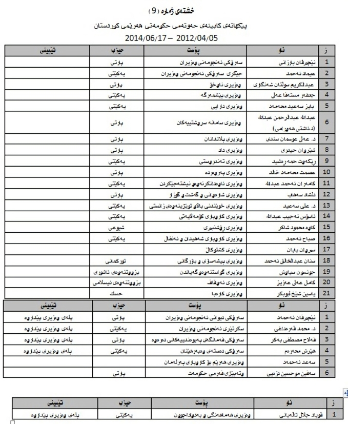 • قەدەغەكردتی گواستنەوەی راژەی فەرمانبەران لەنێوان سەرجەم وەزارەت و لایەنە نەبەستراوەكان بە وەزارەت..