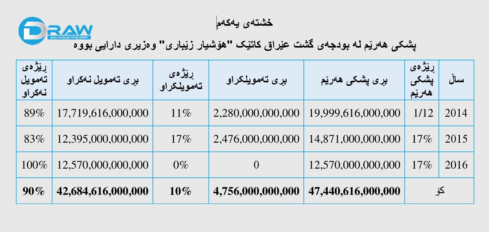 پشکی هەرێم لە بودجەی گشتی عێراق لەکاتێک هۆشیار زێباری وەزیری دارایی بووە لە 2014-2016؛