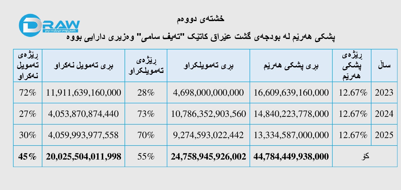 پشکی هەرێم لە بودجەی گشتی عێراق کە تەیف سامی وەزیری دارایی بووە لە 2023-2025؛