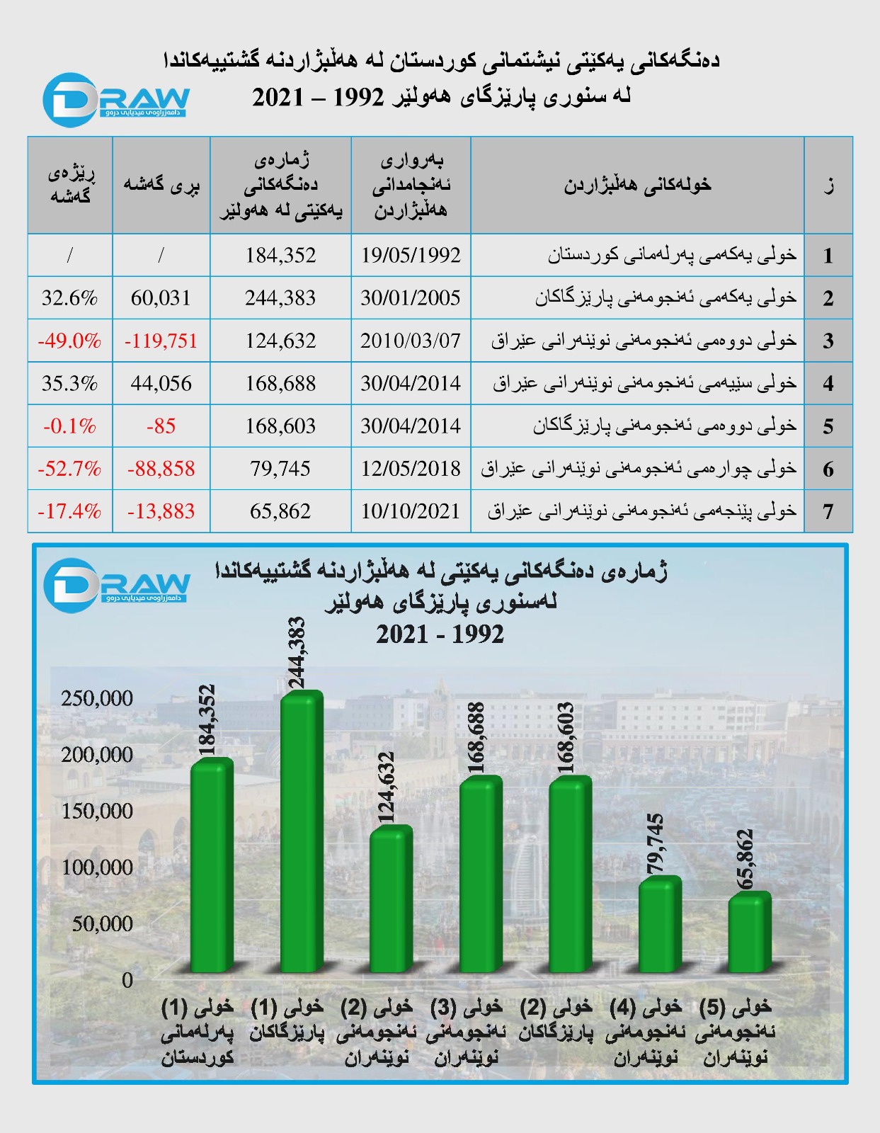 ? لە خولی یەکەمی هەڵبژاردنی پەلەمانی کوردستان لە ساڵی (1992) یەکێتی (184 هەزار و 352) دەنگی بەدەستهێنابوو.