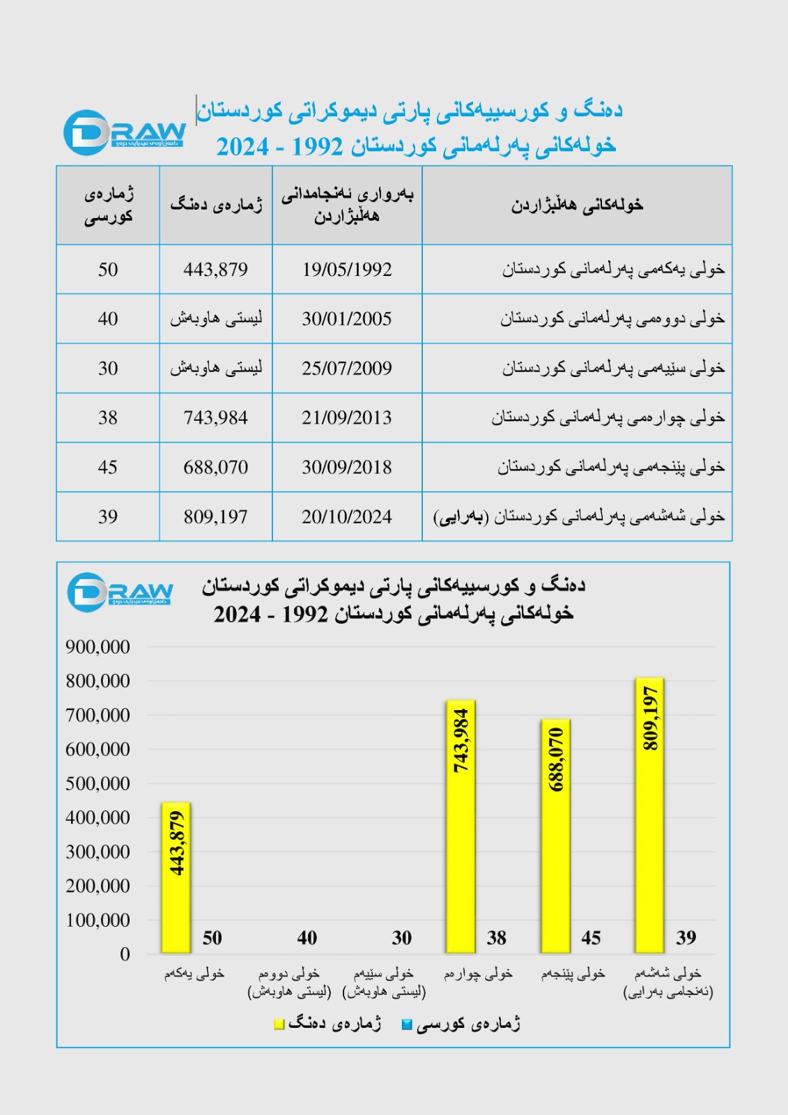 دەنگ و کورسییەکانی پارتی دیموکراتی کوردستان