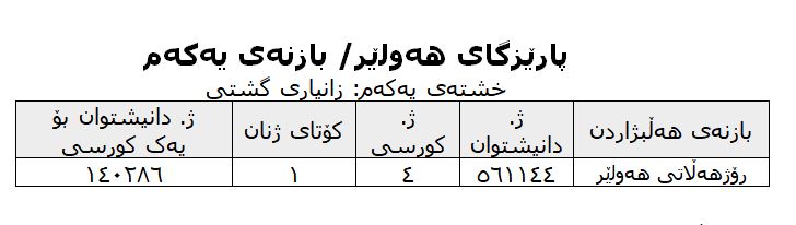 b. لانی کەمی کورسیی کۆتای ژن: ١١ (دەبو لانی کەم ١٢ کورسی بێت بەڵام لە خشتەی مادەی ٢- دوەمی پەیڕەوەکە ١١ نوسراوە).