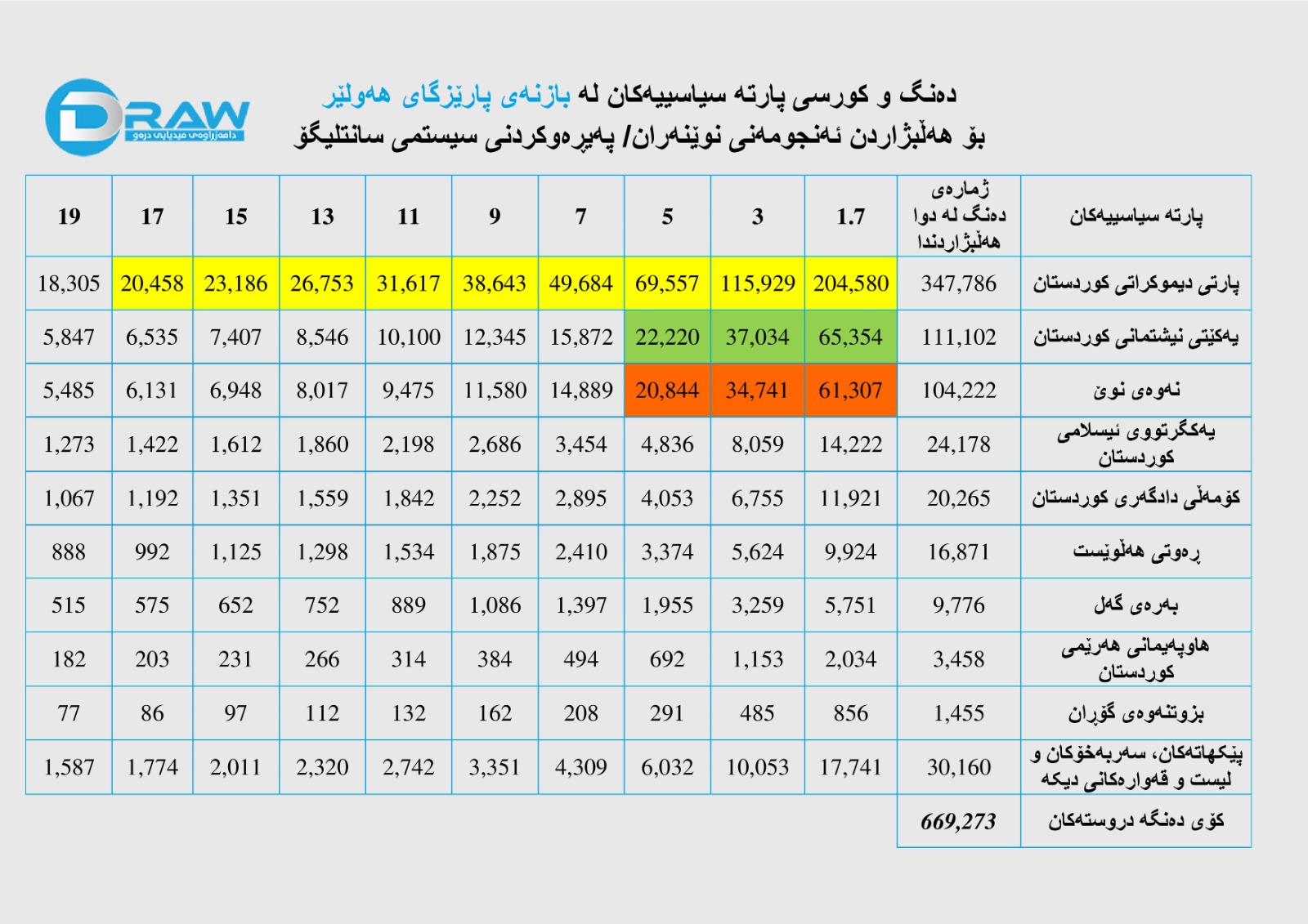 - بزوتنەوەی گۆڕان (197) دەنگ بە ڕێژەی (1%).
