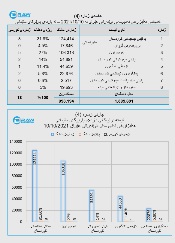 چوارەم/ بازنەی پارێزگای سلێمانی لە هەڵبژاردنی ئەنجومەنی نوێنەرانی عێراق 10/10/2021