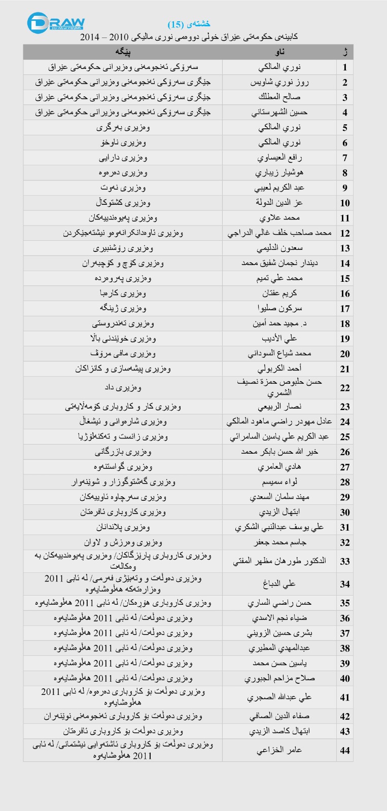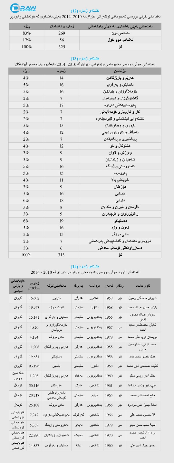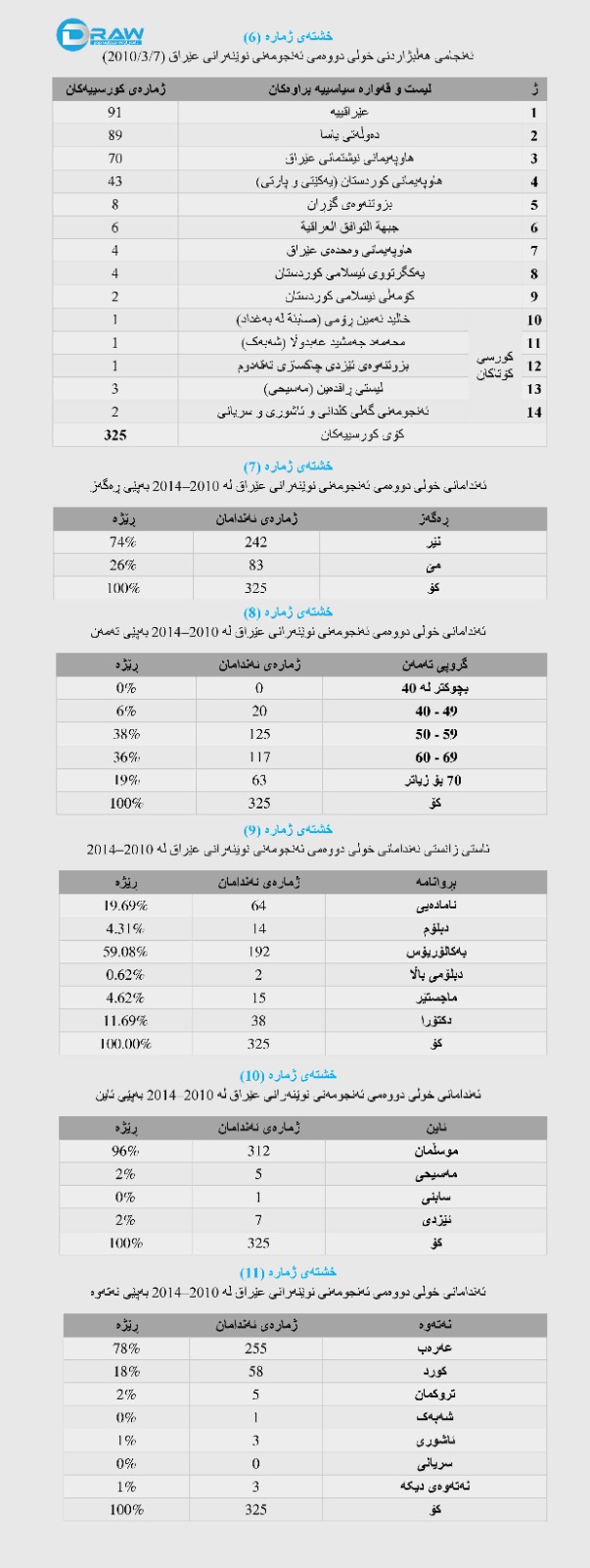سێیەم: پێگەی کورد لە حوکمڕانی عێراق 2010-2014 بە داتاو گرافیک
