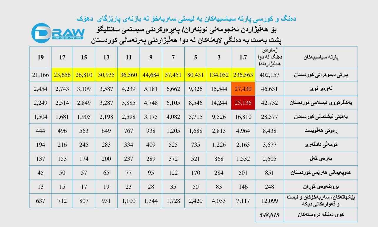 نمونەی دەنگی لایەنەكان لە هەڵبژاردنی پەرلەمانی كوردستان 2024 و بە پەیڕەوكردنی شێوازی (سانت لیگۆ 1.7)