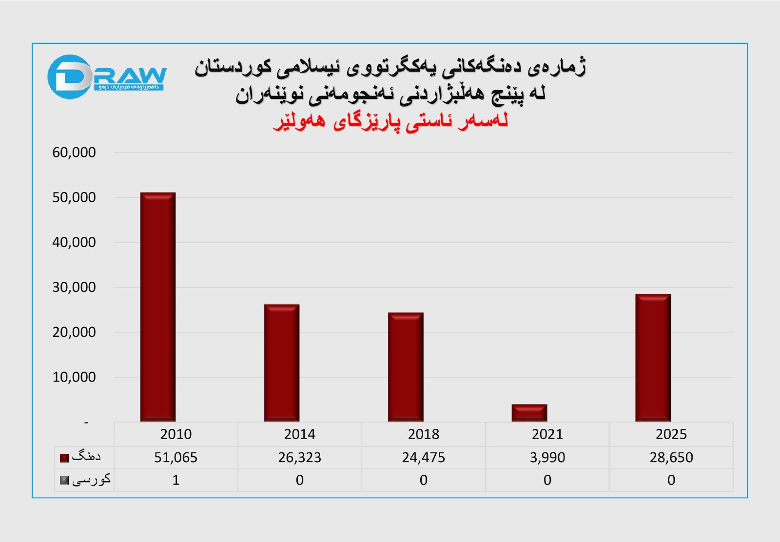 ? ساڵی 2025؛ 28 هەزار و 650 دەنگ و (0) کورسی. (بەرایی)