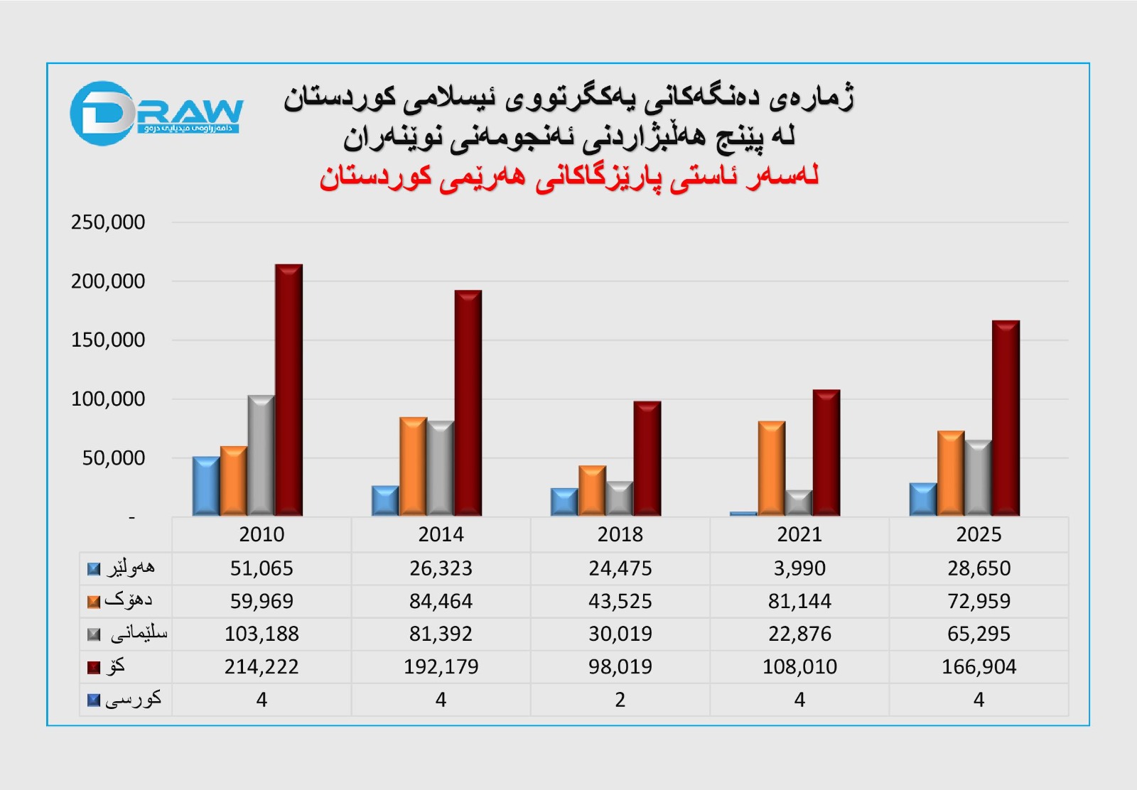 ? ساڵی 2025؛ 166 هەزار و 904 دەنگ و (4) کورسی. (بەرایی)