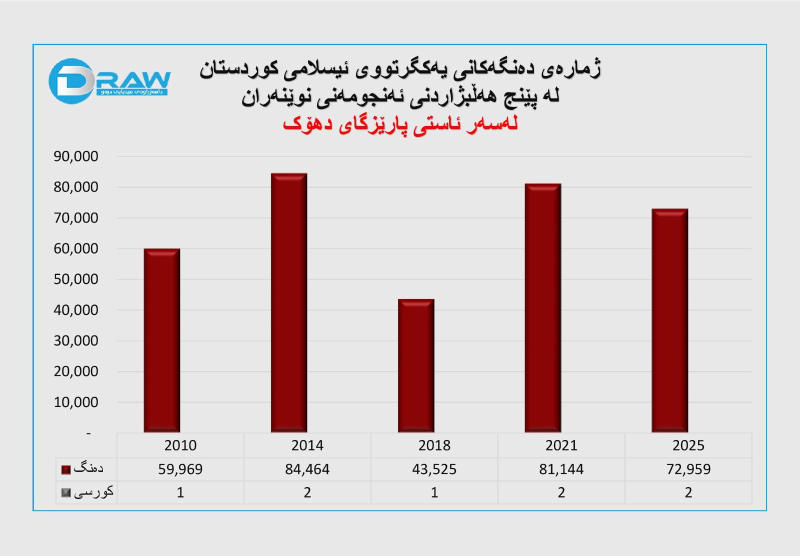 ? ساڵی 2025؛ 72 هەزار و 959 دەنگ و (2) کورسی. (بەرایی)