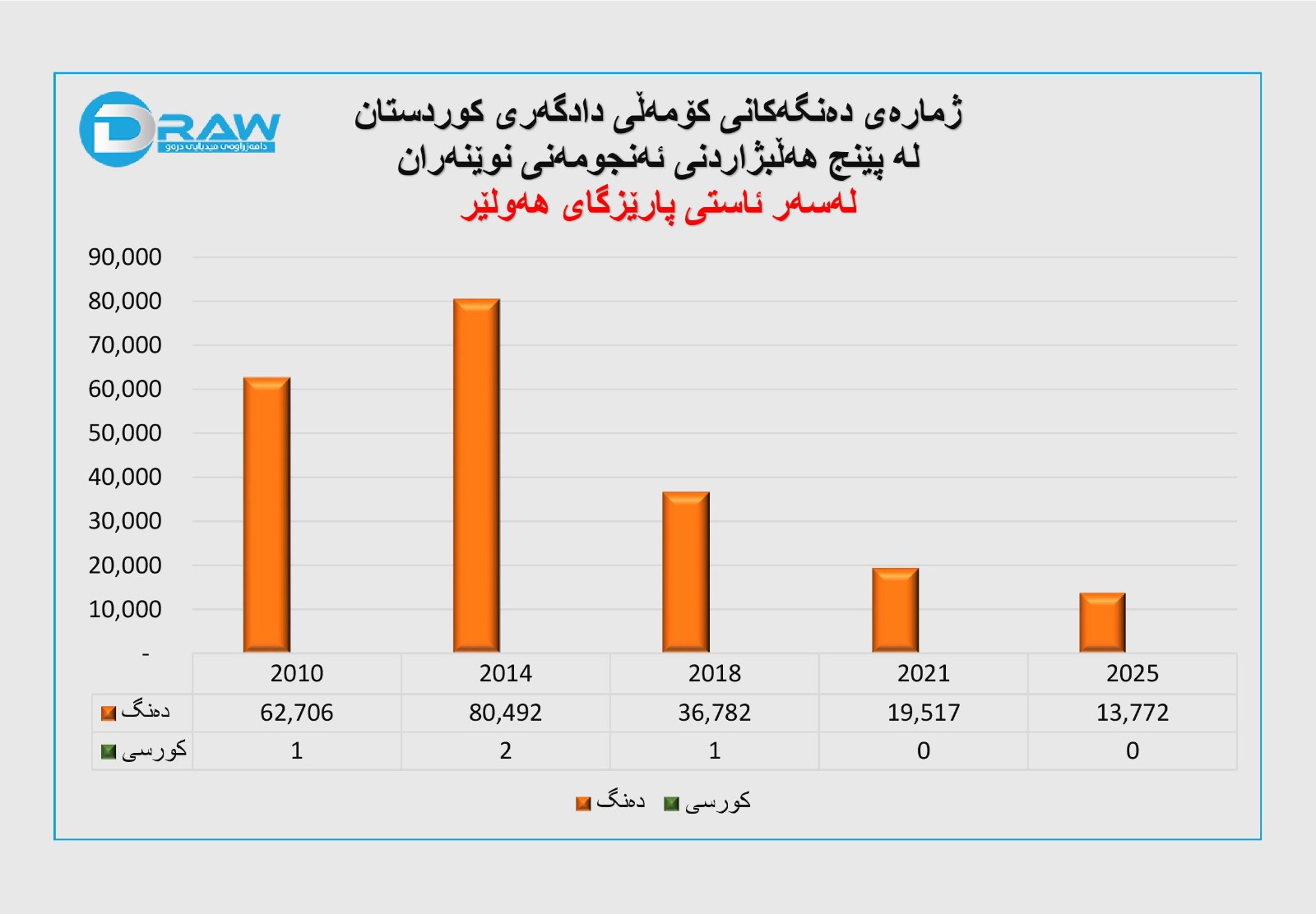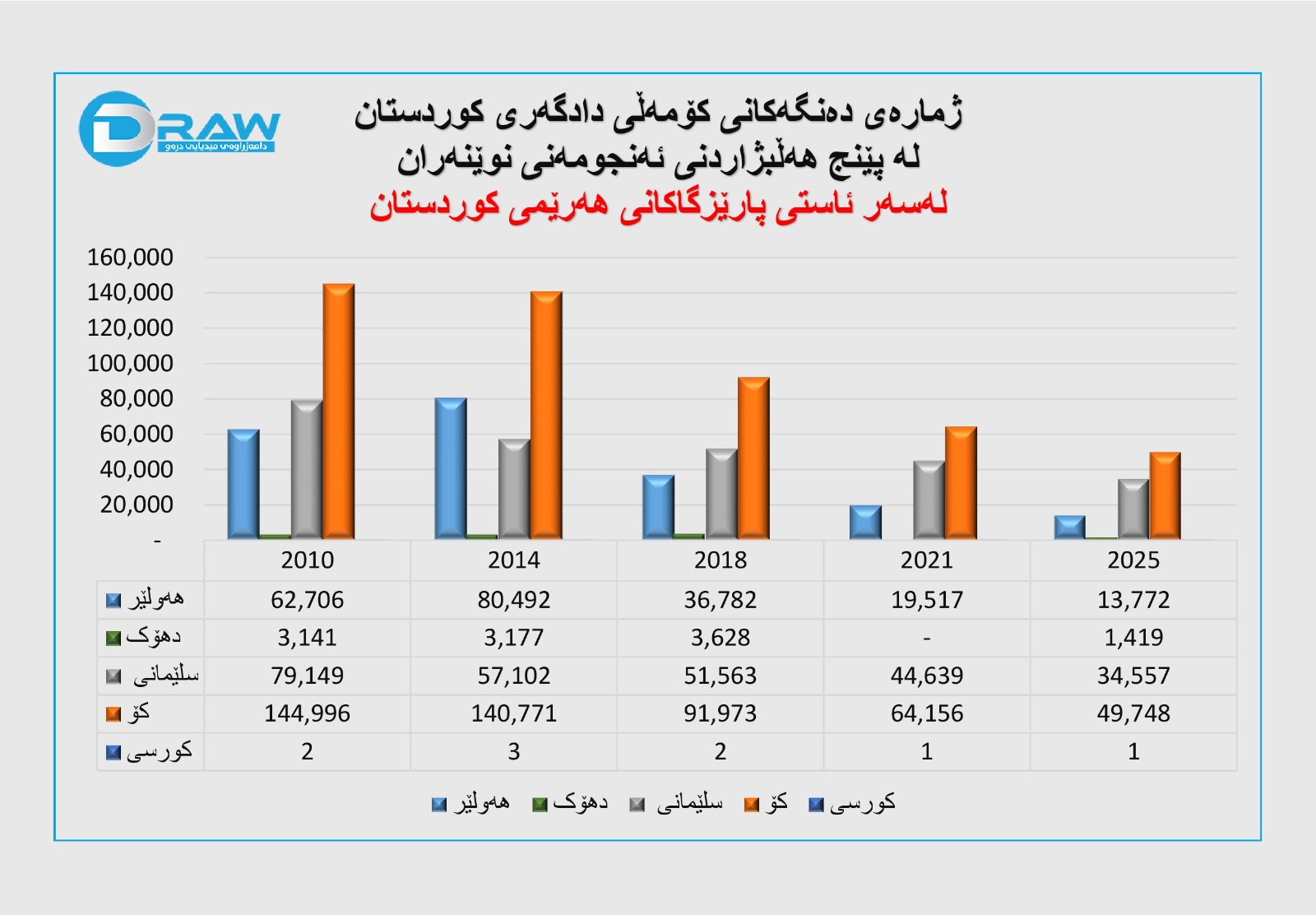 ? ساڵی 2025؛ 13 هەزار و 772 دەنگ و (0) کورسی. (بەرایی)