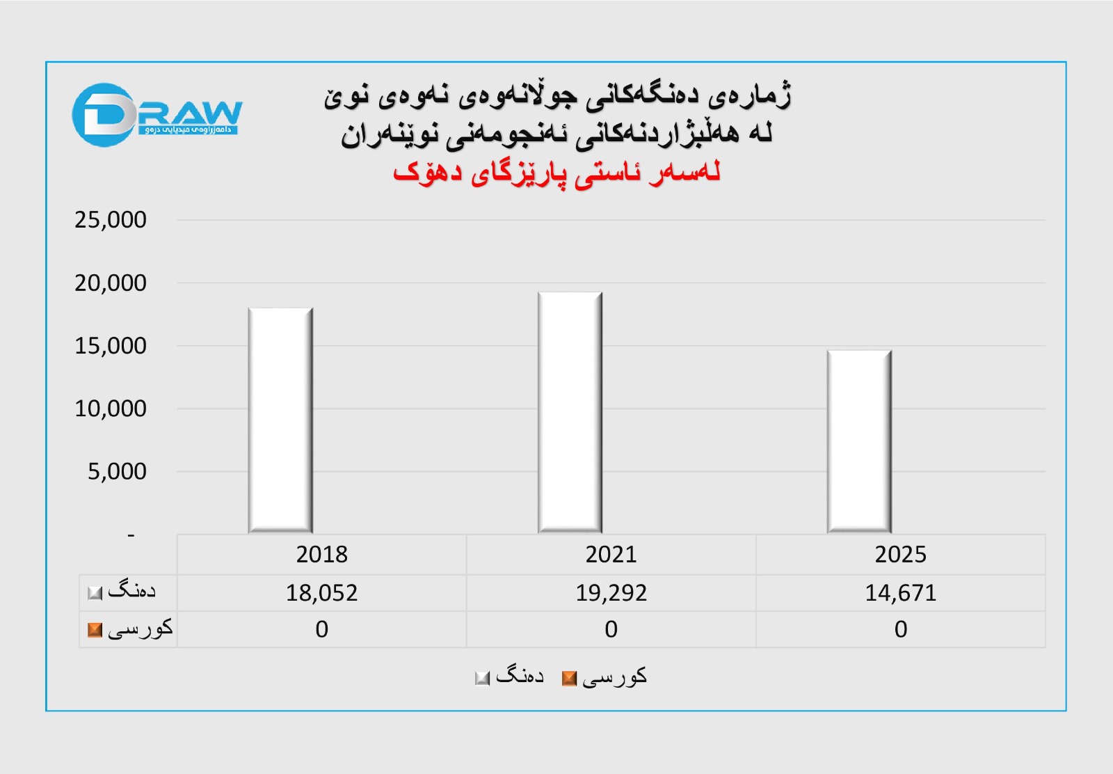 ? ساڵی 2025؛ 14 هەزار و 292 دەنگ و (0) کورسی. (بەرایی)
