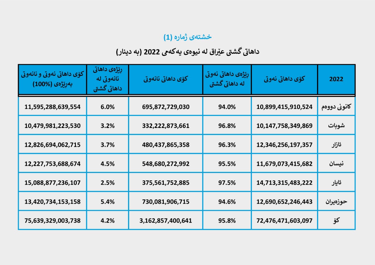 یەکەم: داهاتی گشتی عێراق لە نیوەی یەکەمی 2022