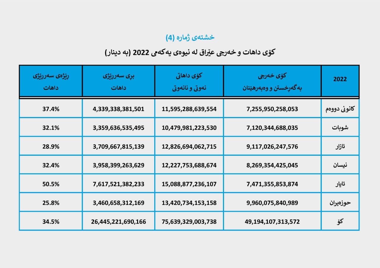 کۆی داهات و خەرجی گشتی عێراق لە نیوەی یەکەمی 2022