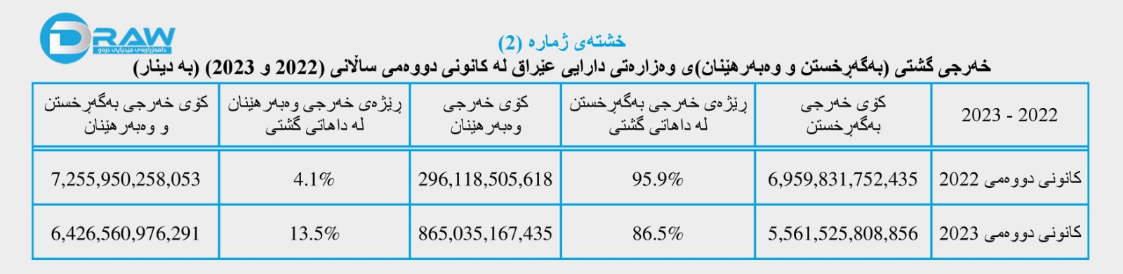 دووەم: خەرجی گشتی (بەگەڕخستن و وەبەرهێنان) لە کانونی دووەمی ساڵانی (2022 و 2023)