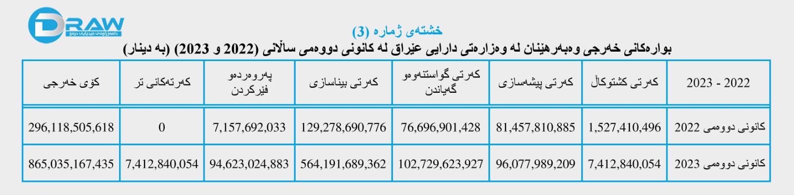 سێیەم: بوارەکانی خەرجی وەبەرهێنان لە کانونی دووەمی ساڵانی (2022 و 2023)