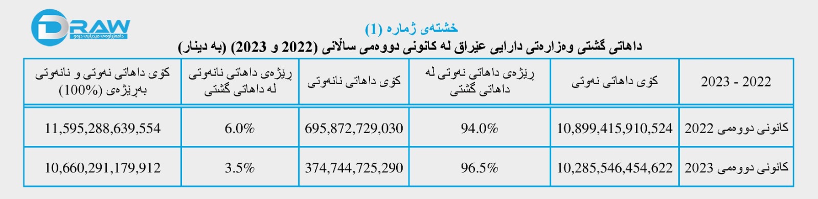 یەکەم: داهاتی گشتی وەزارەتی دارایی عێراق لە کانونی دووەمی ساڵانی (2022 و 2023)
