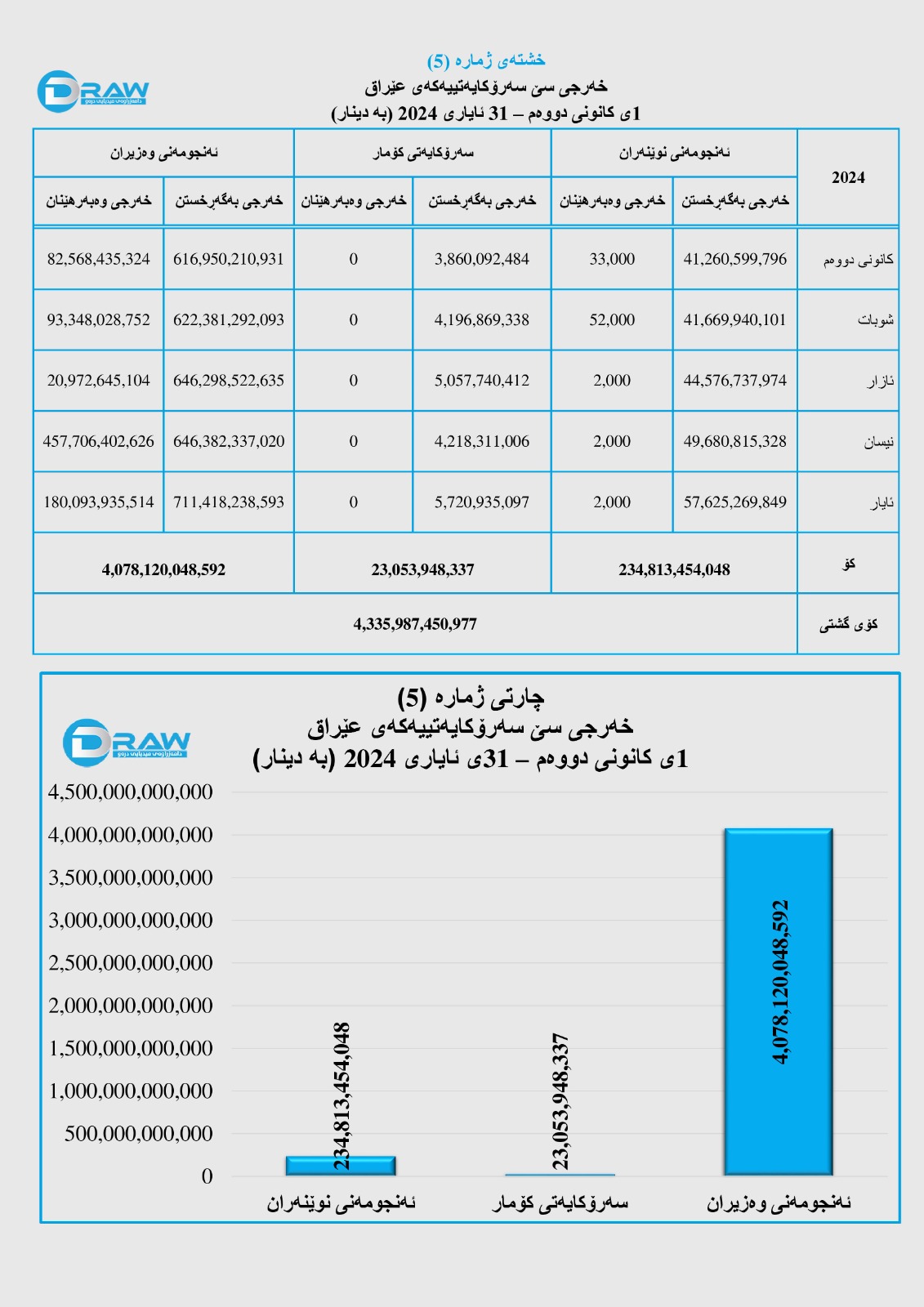 بۆ وردەکاری خەرجی سێ سەرۆکایەتییەکە لە پێنج مانگی یەکەمی ساڵی (2024) بڕوانە (خشتەو چارتی ژمارە (5)).