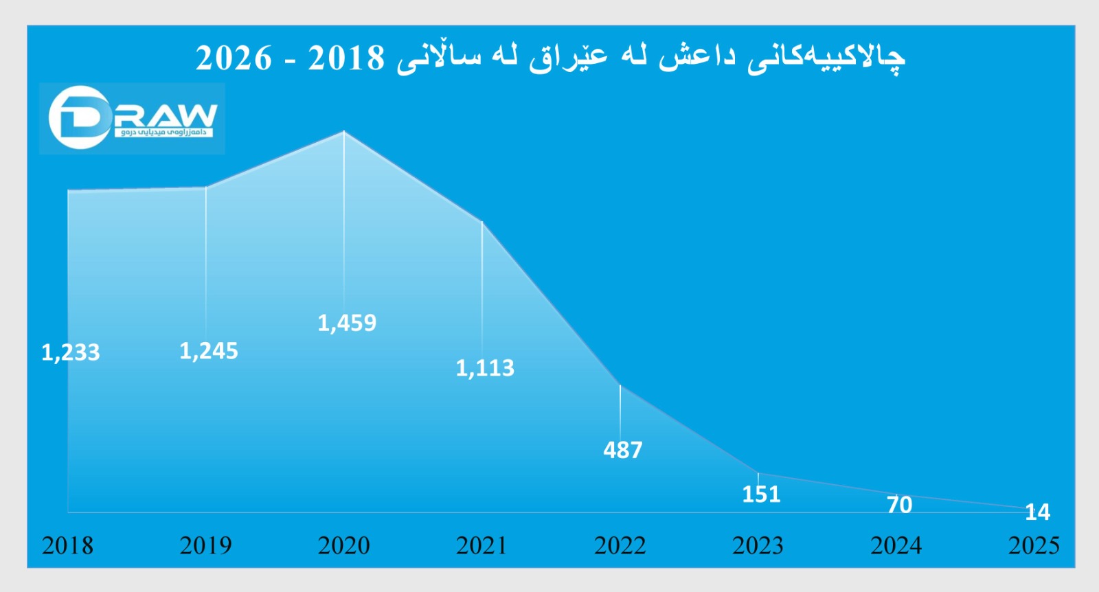 داتا ئامارییەکانی ساڵانی 2018 - 2026 ئاماژە بە پاشەکشەیەکی پلەبەندیی کردەوەکانی ڕێکخراوی داعش لە عێراق دەکەن، ئەوەش دوای ئەوەی لە ساڵی 2018دا کۆنترۆڵی زەمینیی ناوچەکانی لەدەستدا. لە کاتێکدا ئاستی چالاکییەکانی لە نێوان ساڵانی 2018 - 2021دا بە بەرزیی مابووەوە و ساڵانە زیاتر لە 1,000 کردەوەی ئەنجام دەدا، بەڵام لە ساڵی 2022دا تووشی داڕمانێکی کوشندە هات؛ بە جۆرێک ژمارەی چالاکییەکانی بۆ 487 کردەوە دابەزی و ئەم کورتهێنانە بەردەوام بوو تا لە ساڵی 2025دا تەنها گەیشتە 14 کردەوە. ئەمەش بەو مانایەیە کە ڕێژەی چالاکییەکانی ڕێکخراوەکە بەراورد بە ساڵی 2018 بە ڕێژەی 98.9% دابەزیوە.
