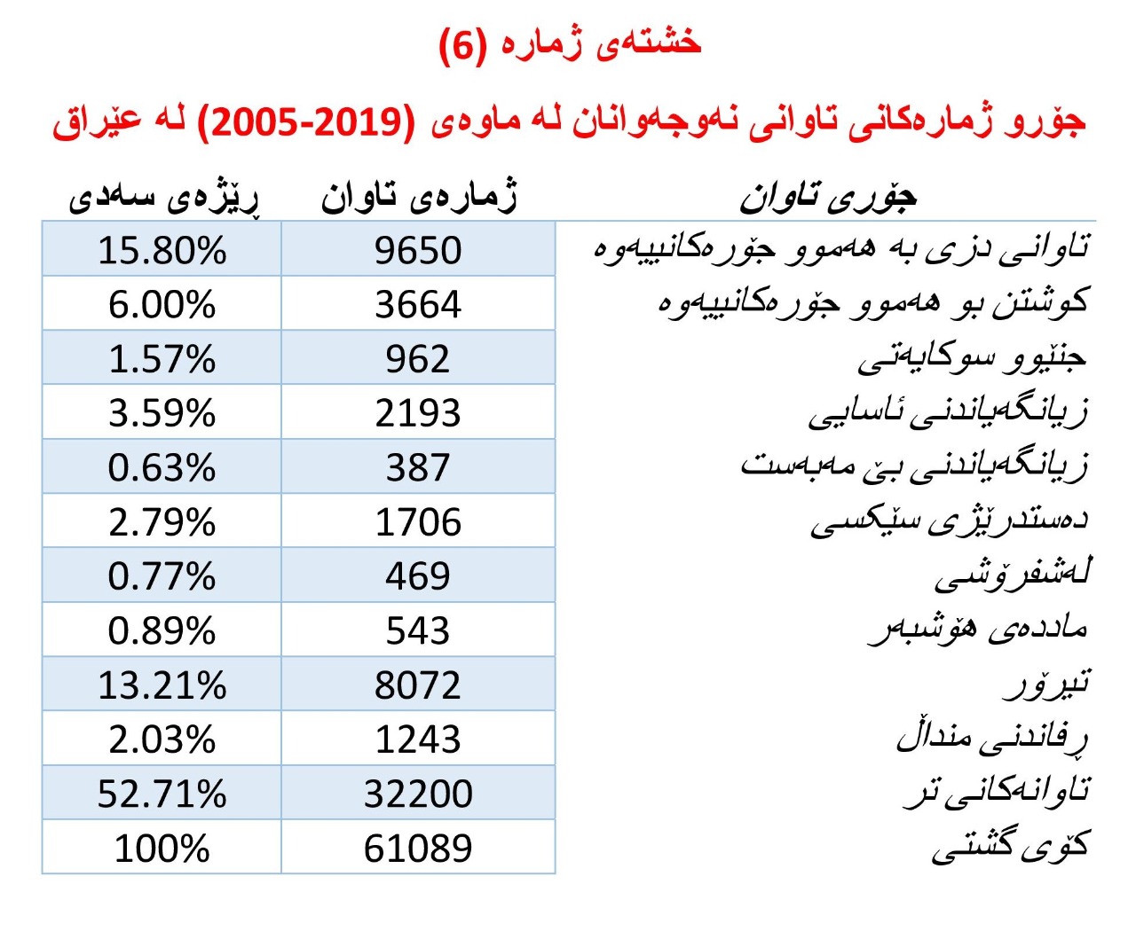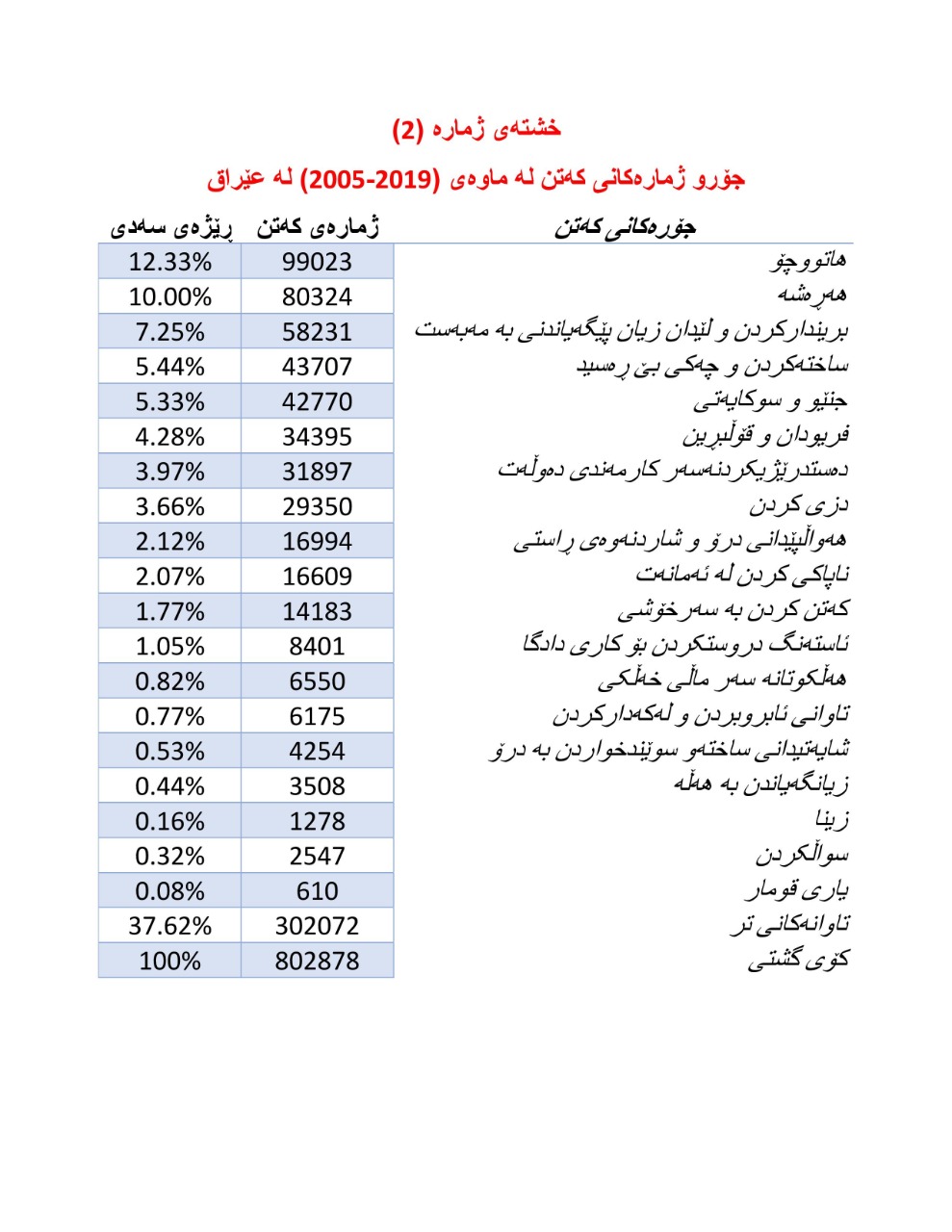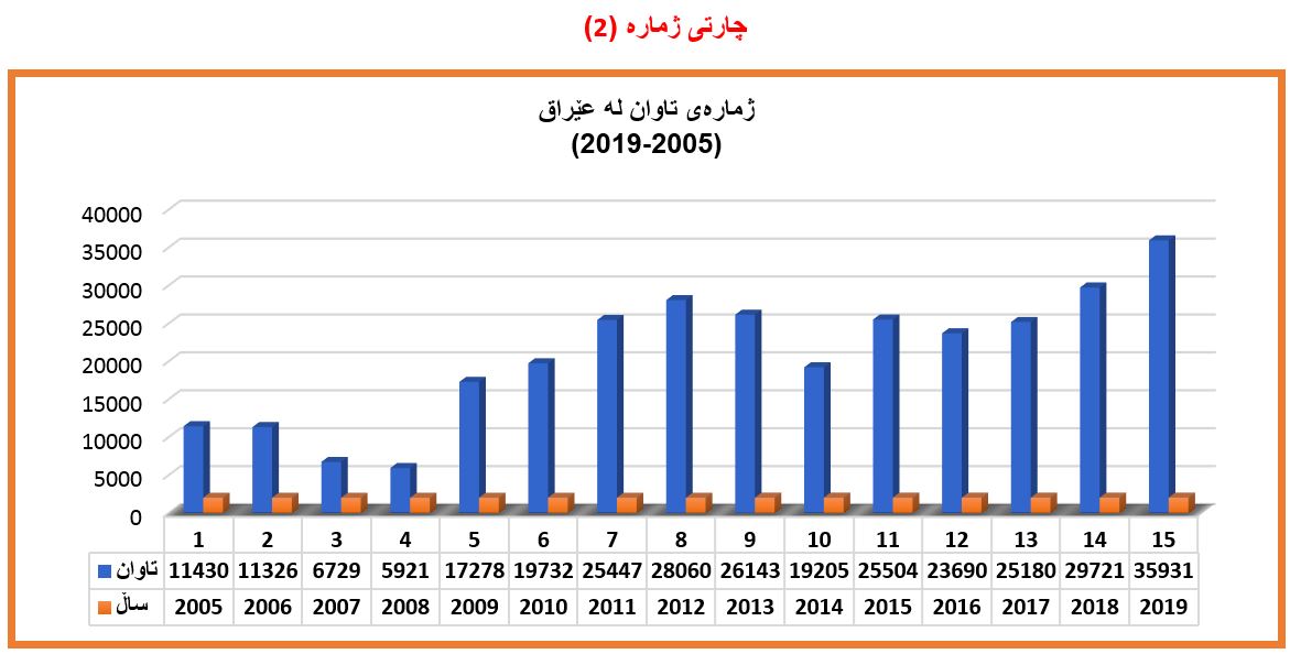 ژمارەو ڕێژە و جۆری تاوانەکان لە عێراق لە ساڵی 2005-2019