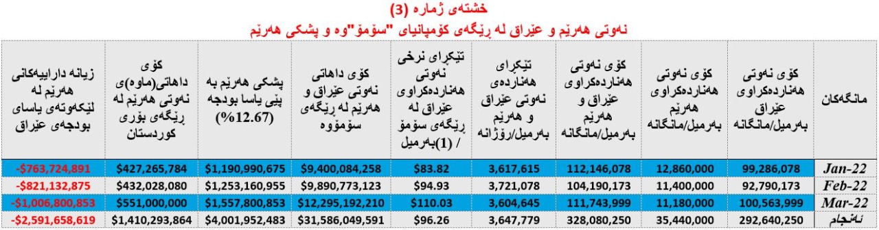 3. نەوتی هەرێم و عێراق لە ڕێگەی کۆمپانیای "سۆمۆ"وە و پشکی هەرێم لە مانگی ئازاری 2022