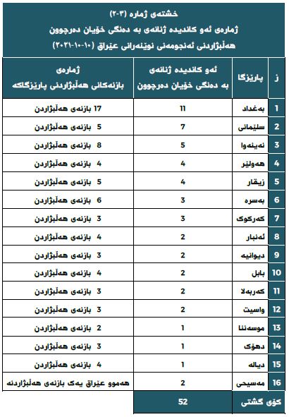- پێگەی کاندیدی تاکەکەسی لە سێیەمین خولی هەڵبژاردنی ئەنجومەنی نوێنەرانی عێراقدا