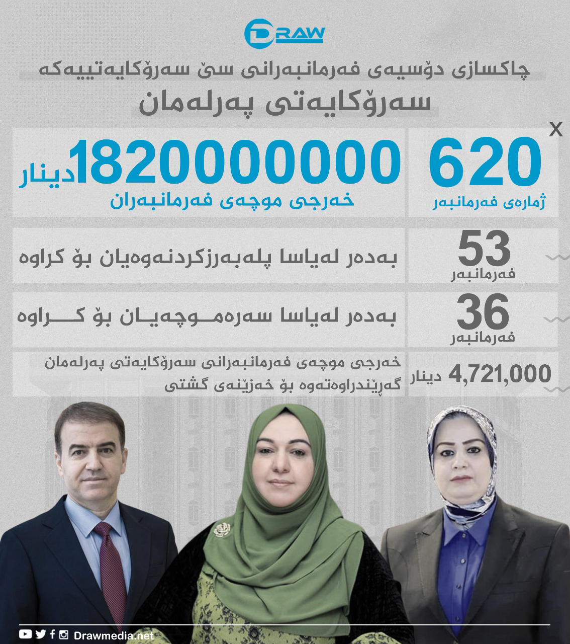تەنیا خەرجی موچە لە پەرلەمانی كوردستان مانگانە بڕەكەی (ملیارێكو 820 ملیۆن) دینارە.