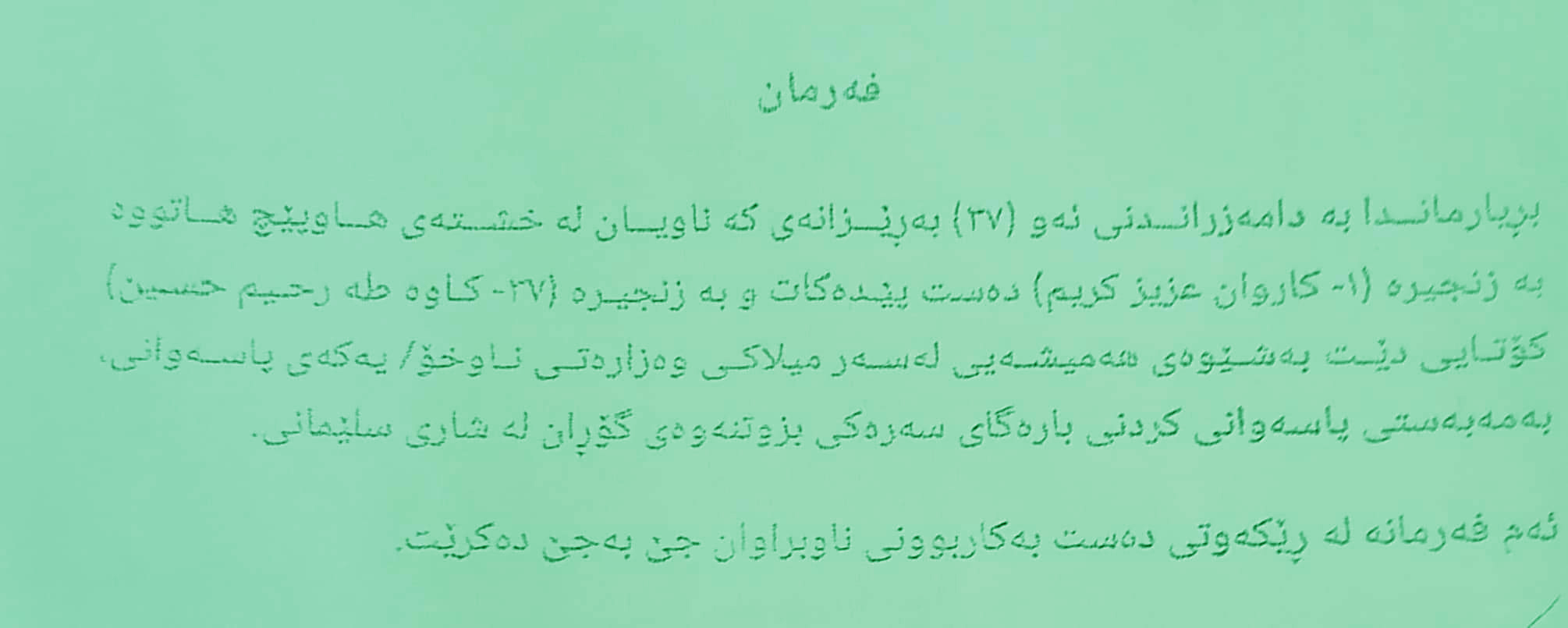 بەپێی فەرمانێكی مەسرور بارزانی سەرۆكی حكومەتی هەرێمی كوردستان و لەسەر داوای بزوتنەوەی گۆڕان، (37) كەس وەك پۆلیس لە وەزارەتی ناوخۆ بە هەمیشەیی دامەزرێندران، دامەزراندنی ئەو ئەندامانەی بزوتنەوەی گۆڕان بەمەبەستی پاسەوانیكردنە لە بارەگای سەرەكی بزوتنەوەی گۆڕان لە شاری سلێمانی، ئەمە لە كاتێكدایە لە ساڵی 2014 ەوە فەرمانی دامەزراندن بۆ فەرمانبەران راگیراوە، لە فەرمانەكەدا ناوی سەرجەم ئەو (37) كەسە بڵاوكراوەتەوە كە بە (كاروان عەزیز كەریم) دەستپێدەكات و بە ( كاوە تەها رەحیم) كۆتایی دێت.