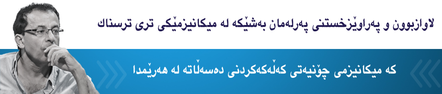 لاوازبوون و پەراوێزخستنی پەرلەمان بەشێکە لە میکانیزمێکی تری ترسناک، کە میکانیزمی چۆنیەتی کەڵەکەکردنی دەسەڵاتە لە ھەرێمدا. گەشەی دەسەڵات لە دونیای دوای ڕاپەڕیندا گەشەیەکی پێچەوانەییە و ڕووی لە بچوککردنەوەی بازنە سەرەکییەکانی دەسەڵاتە. کەڵەکەکردنی دەسەڵات بەپێچەوانەی دابەشبوون و بڵاوبوونەوەی زیاتر و زیارتری دەسەڵات بەناو جەستەی کۆمەڵگادا کاریکردوە، پێچەوانەی ئەوەبووە چەندان ھێز و گروپ و توێژی کۆمەڵایەتیی تازە بازنەی نوێی دەسەڵات دروستبکەن و ڕێ لەوەبگرن ھەمووی لە دەستی چەند خێزان و بنەماڵەیەکدا کۆببێتەوە. ئەمەش لە ئاستە دەزگاییەکەیدا مانای ئەوەیە لەباتی بە دەزگایکردن و بەیاساییکردنی دەسەڵات، پێچەوانەکەی ڕووبدات. دەسەڵات ببێت بە دەسەڵاتێکی خێزانیی و بە لۆژیکێکی سوڵتانیانەش بخرێتەگەڕ. لەباتی بڵاوبوونەوە و دابەشکردن و چاودێریکردنی، کۆبکرێتەوە و بە پێگەی کۆمەڵێک کەس و خێزانی دیاریکراوەوە ببەسترێتەوە. ئەم بەشەخسیی و بەخێزانیکردنەی دەسەڵات وایکردوە ئیشکردنی دەسەڵات ھەم بکەوێتە دەرەوەی یاساکان و ھەم دەرەوەی دەزگاکان، بە دەزگای پەرلەمان خۆیشیەوە.