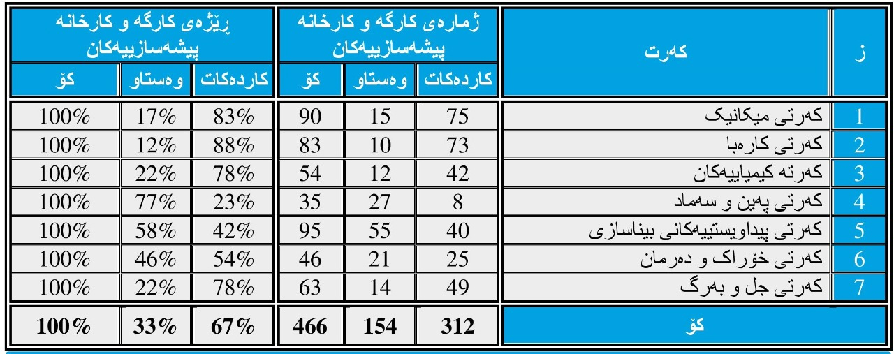 ژمارەو ڕێژەی کارگە پیشەسازییەکانی کەرتی گشتی لە عێراق