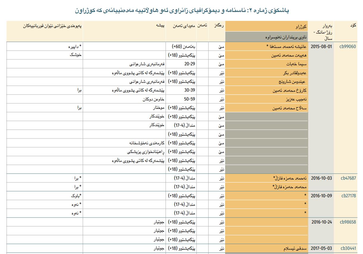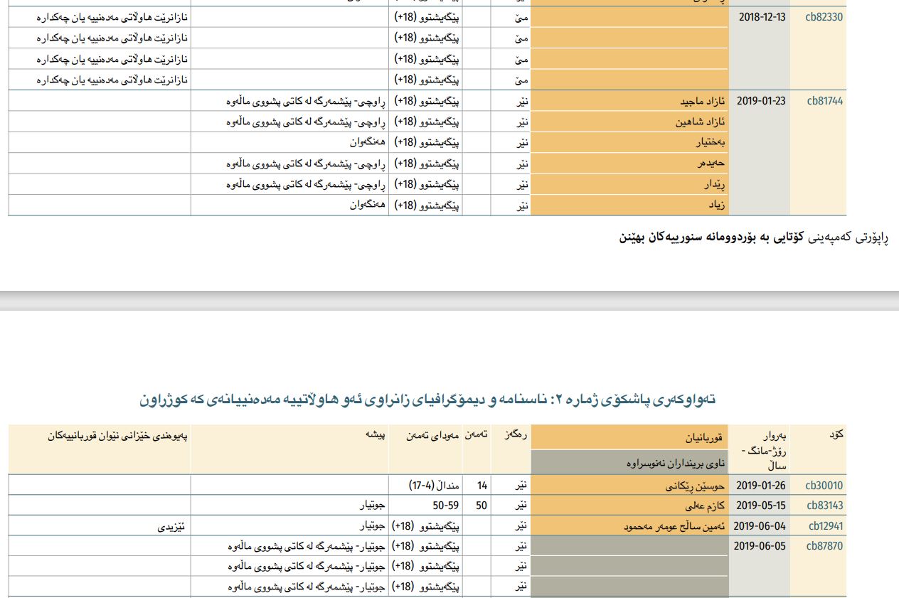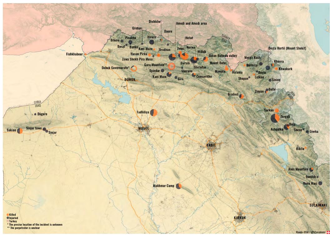 نەخشەی دابەشبوونی قوربانیانی مەدەنی بەپێی ناوچەی جوگرافی و دەیان زانیاری و داتای گرنگ لەم ڕاپۆرتەدا ببینە: https://static1.squarespace.com/static/59a826c98419c278e3fc88a4/t/63071bdbf2e70f0e30fbe7df/1661410271429/ECBB-Report-KU.pdf