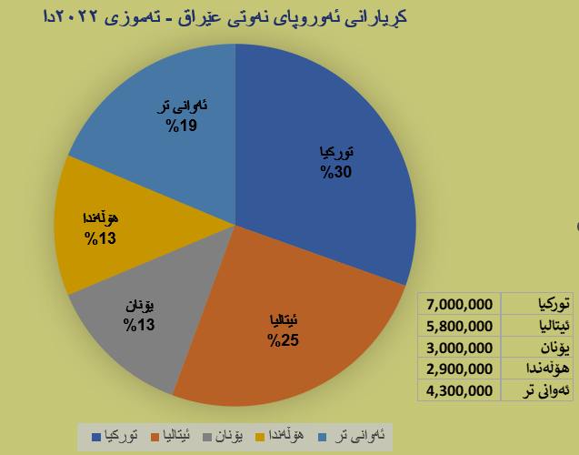 جێگای ئاماژەیە کە هەناردەی عێراق بۆ وڵاتانی ئەوروپا پێش قەیرانی ئۆکرانیا و ڕووسیا لە 12% تێپەڕی نەکردووە، ئەوەش بەهۆی گرنگیدانی عێراق بە بازاڕی ئاسیا.
