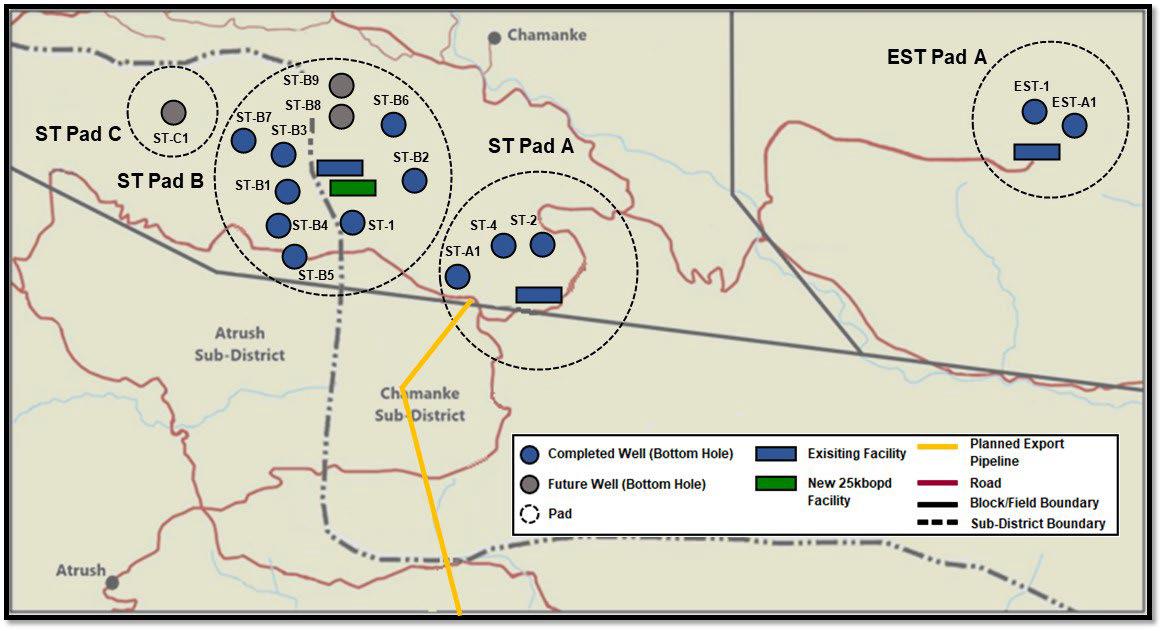 لە ئێستادا پشكی (62%)ی کێڵگە نەوتییەکە دراوهته كۆمپانیای (ئێچ كهی ئێن ئێنهرجی) ئەمریکی و پشكی (18%)ی دراوهته لقێکی کۆمپانیای (تۆتاڵ)ی فەرەنسی و پشكی (20%)ی ماوەتەوە بۆ حکومەتی هەرێم کوردستانە.