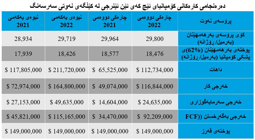 بەپێی دواین ڕاپۆرتی کۆمپانیاکە لە نیوەی یەکەمی 2022 لە کێڵگەی سەرسەنگ؛