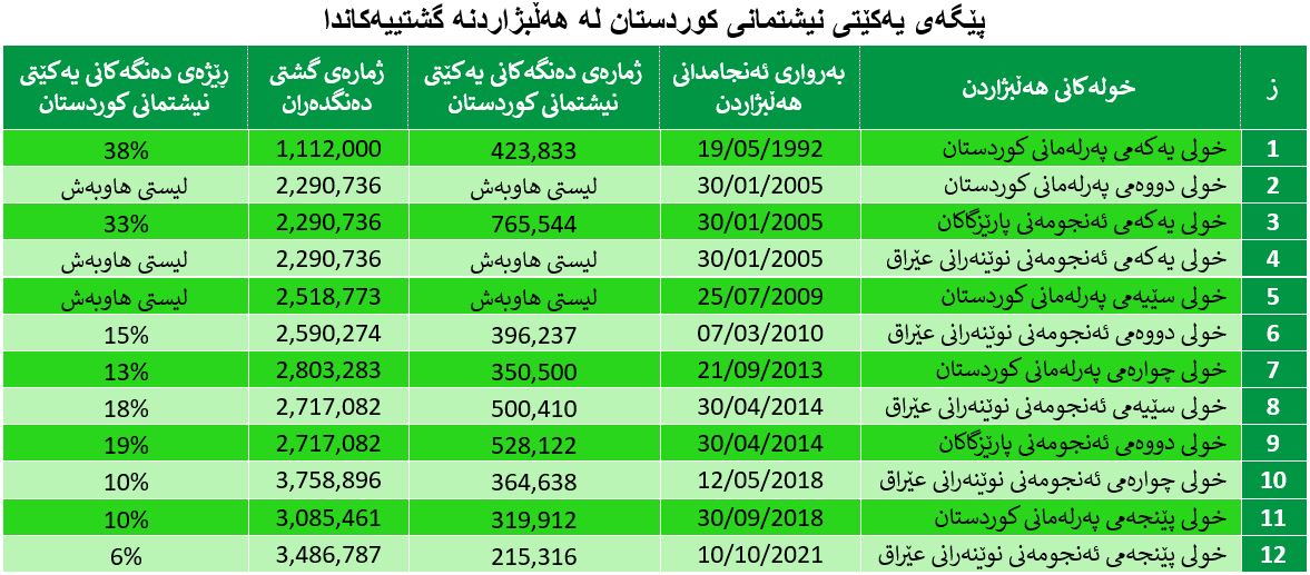4. هەڵبژاردن لە هەرێمی كوردستان بەیەك بازنە بەرێوە چوو.