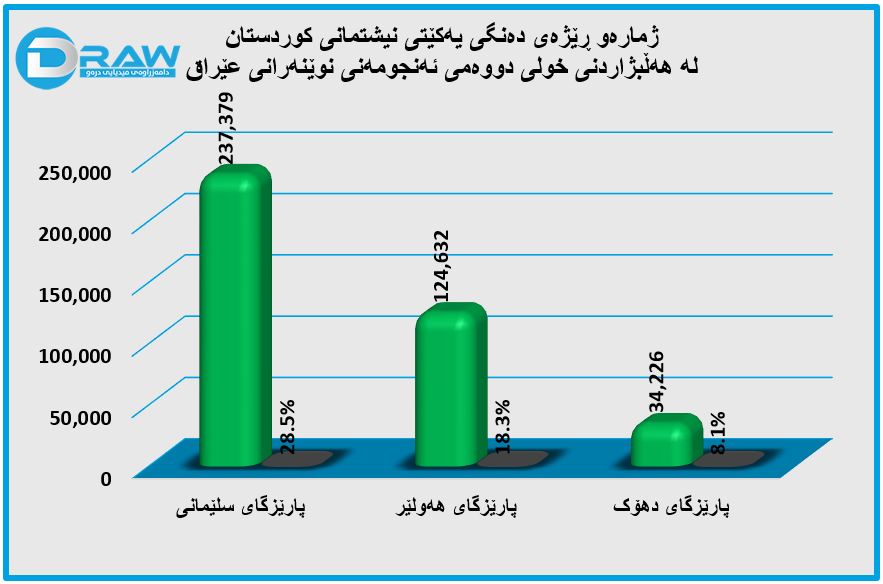 - دەنگی یەکێتی لە پارێزگای سلێمانی (237 هەزارو 379) دەنگ بەرێژەی (28.47%)