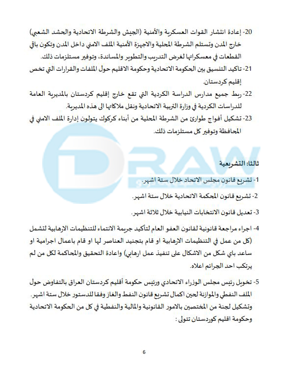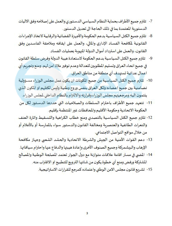 *ھەموو لایەنەکان پابەند بن بە گێڕانەوەی شکۆی دەوڵەت و چەسپاندنی یاسا لە سەرتاسەری عێراقدا.