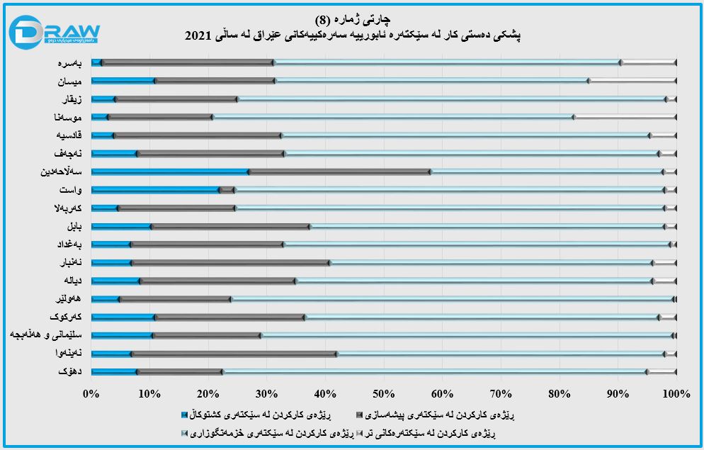 سێیەم؛ پشکی دەستی کار لە سێکتەرە ئابورییە سەرەکییەکانی عێراق لە ساڵی 2021