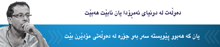 ئەمڕۆ بەشێکی گەورەی دانیشتوانی سەر ئەم ئەستێرەیە زۆر لەو ڕاستییە سادەیە تێگەیشتون کە دەوڵەت لە دونیای ئەمڕۆدا یان نابێت ھەبێت، یان کە ھەبوو پێویستە سەر بەو جۆرە لە دەوڵەتی مۆدێرن بێت کە لە سەدەی ھەڤدەھەمەوە لە پرۆسەی دروستبوون و گەشەکردنێکی ئاڵۆز و بەردەوامدایە. ئەو شێوازە لە دەوڵەت کە تیایدا دەسەڵاتەکان بەڕاستیی لەیەکتری جیاکراونەتەوە، دەزگای گرنگ و بەھێز بۆ لێپپرسینەوە و بەرپرسیارکردنی سیاسیی ھەن و کاردەکەن، دەستگۆڕکێی ڕاستەقینەی دەسەڵات لەناو ئەو دەوڵەتەدا ئەنجامئەدرێت، خودی دەوڵەتەکە خۆیشی ڕێژەییانە بێلایەن و چالاکانە چاودێرە بەسەر گشتێتی ژیانی کۆمەڵایەتییەوە. ھەر دەوڵەت خۆیشی توانای بەکارھێنانی توندوتیژیی و شەرعیەتی ئەو بەکارھێنانەی لەدەستدایە، بە تەنھا ئەویشە تواناکانی کۆکردنەوە و وەرگرتنی باجی لەدەستدایە. ئەم دەوڵەتە لەباتی خواست و ویست و زەوقی دەسەڵاتدارێک بەڕێوەیببات، ئیتر گرنگ نییە ئایەتوڵایەکی دینییە یان سەرۆکێکی نادینیی، پێویستە دەستورێک بەڕێوەیببات، کە یاسا و پرنسیپەکانی لەسەروی ھەمووان و ڕووبەڕووی ھەمووانە. لەناو ئەم دەوڵەتەدا بڕیار و سیاسەتەکان لەژێر سێبەری یاسا و لەناو دەزگا فەرمییەکانی حوکمڕانیدا دەدرێت، نەک لە ژووری تایبەتی پادشا و لە کۆشک و بارەگای ئەم یان ئەو سەرکردەی سیاسیدا.