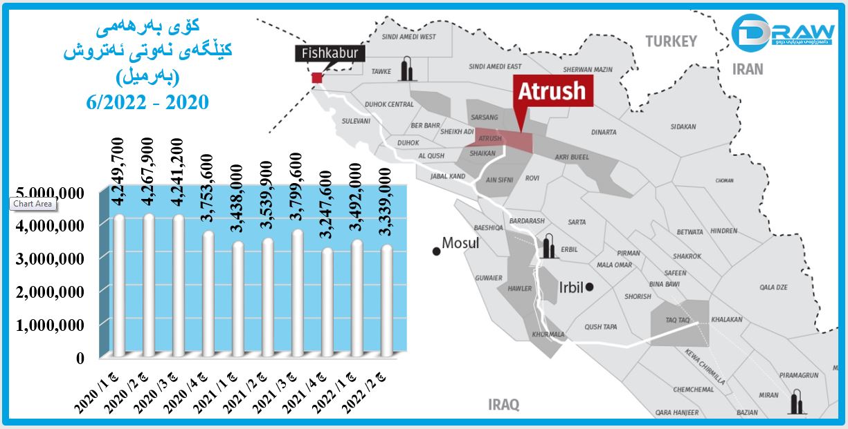 کۆی بەرهەمی نەوتی کێڵگەی ئەتروش لە (2020 – نیوەی یەکەمی 2022)