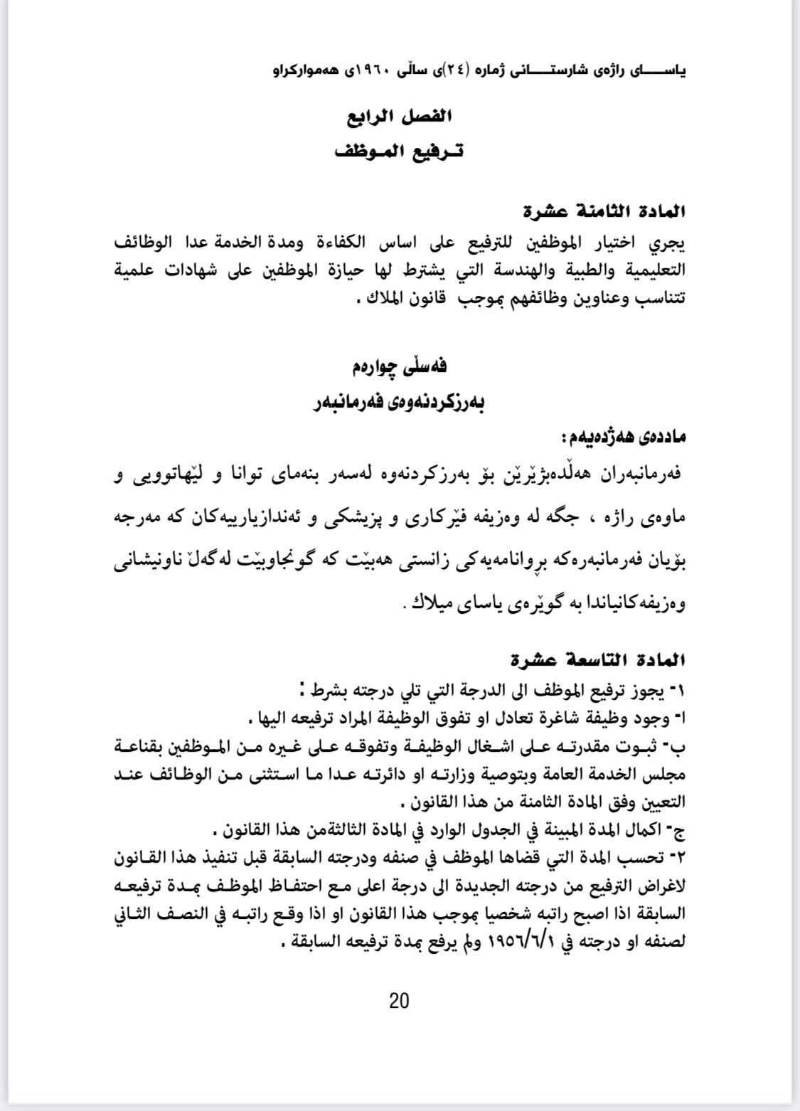بەگوێرەی بڕیارەكەی مەسرور بارزانی، پلە بەرزكردنەوەی فەرمانبەران بەگوێرەی (پلەی وەزیفی چۆڵ)و (پێداویستی فیعلی وەزارەتو دامەزراوەو فەرمانگەكان) دەبێت، ئەمەش لەچوارچێوەی مەرجەكانی فەسڵی (چوارەم)ی یاسای راژەی شارستانی ژمارە (24)ی ساڵی 1960ی هەمواركراوی عێراق.