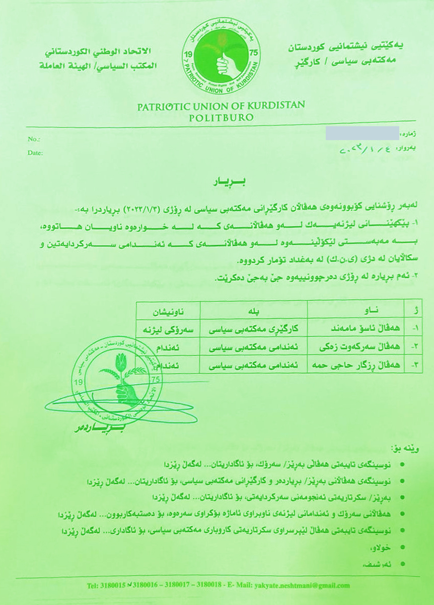 پێشتر بە بڕیاری بڕیاردەر هەریەك لە ( ئاڵا تاڵەبانی، شادمان مەلا حەسەن، ژینۆ محەمەد) لە سەركردایەتی یەكێتی دەركران.