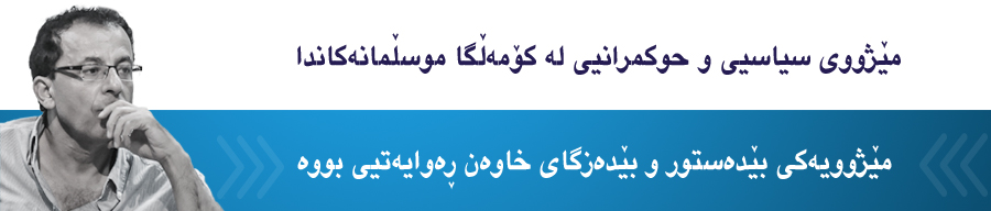 مێژووی سیاسیی و حوکمرانیی لە کۆمەڵگا موسڵمانەکاندا، لە سەرەتای سەرەتاوە، مێژوویەکی بێدەستور و بێدەزگای خاوەن ڕەوایەتیی بووە. دانانی یەکەمین دەستور لەناو مێژوی سیاسیی کۆمەڵگا ئیسلامییەکاندا دوادەکەوێت بۆ کۆتاییەکانی سەدەی نۆزدەهەم. لە ساڵی١٨٧٦دا عوسمانیەکان بۆ یەکەمجار دەستورێک دەنووسن و دەیخەنە بواری کارپێکردنەوە، بەلام ساڵێک دواتر، سوڵتان عەبدولحەمید، هەم دەستورەکە پەکدەخات و ئیشکردن بە دەستوور ڕادەگرێت و هەڵدەوەشێنێتەوە. لە راستیدا بەشێک لە هێزەکانی ئیسلامی سیاسیی تا ئەمرۆش دیموکراسیەت و دەستورگەرایی و پەرلەمانتاریزم وەک کوفر و لادان لە ئیسلام دەبینن و مامەڵەدەکەن.