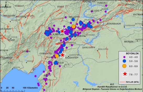 لە شارەکانی سەربەپارێزگانای عەنتاب، هاتای، دیلۆک (باتمان)، ئامەد، ئیسکەندەروون، عوسمانیە، ماڵاتیا، ئادیامان و ئورفە، چەندین گوند و شارۆچکە و شار زیانی مەزنیان بەکەوتووە، بەشێوەیەک کە هەندێکیان خاپوور بوون و چەندین گوند تەختی زەوی بوون. بۆنمونە شارۆچکەی ئیسلاحیەی سەربەشاری عەنتاب کە بەپێی سەرژمێری ساڵی ٢٠١٨ نفوسی ٦٧ هەزار و ٨٦٢ کەسە دەکرێت بڵێین بەشێوەیەک خاپوور بووە کە چیدی تا چەند ساڵی دیکەش ئیمکانی ژیانی تێدا مەحاڵە، هێشتاش هەزاران ماڵی خاپوور بوو لەو شارۆچکەیە وەک خۆی ماوەتەوە و دەستی لێنەدراوە و ئەو مرۆڤانەشی لەژێربینا ڕووخاوەکاندان کەهەزران کەس دەبن هیوای گەڕانەوەیان بۆ ژیان زۆر کەمە.