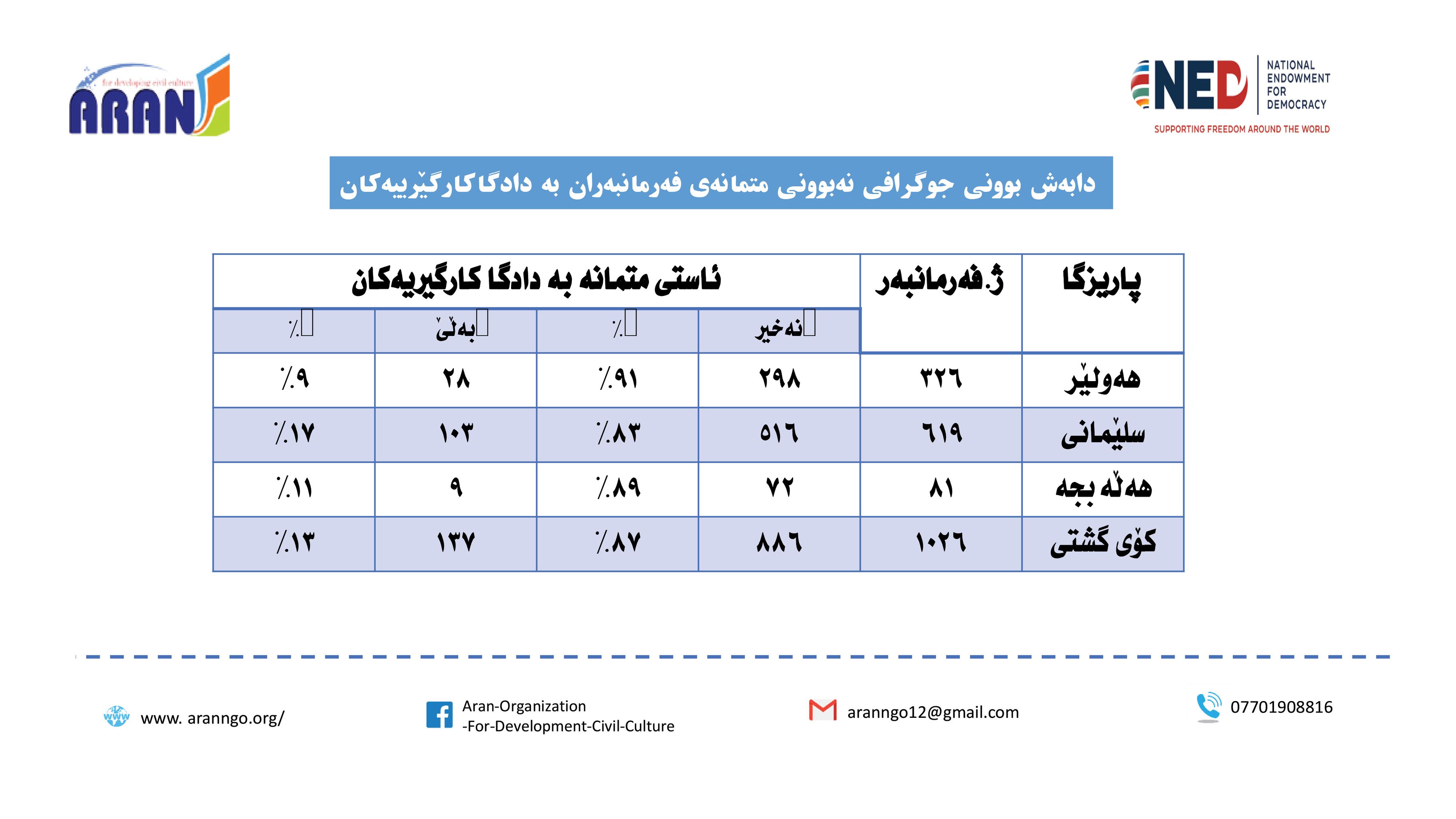 - دابەشبونی جوگرافی قسەكردنی تیمی ئامادەكاری راپۆرتەكە لەگەڵ فەرمانبەراندا: