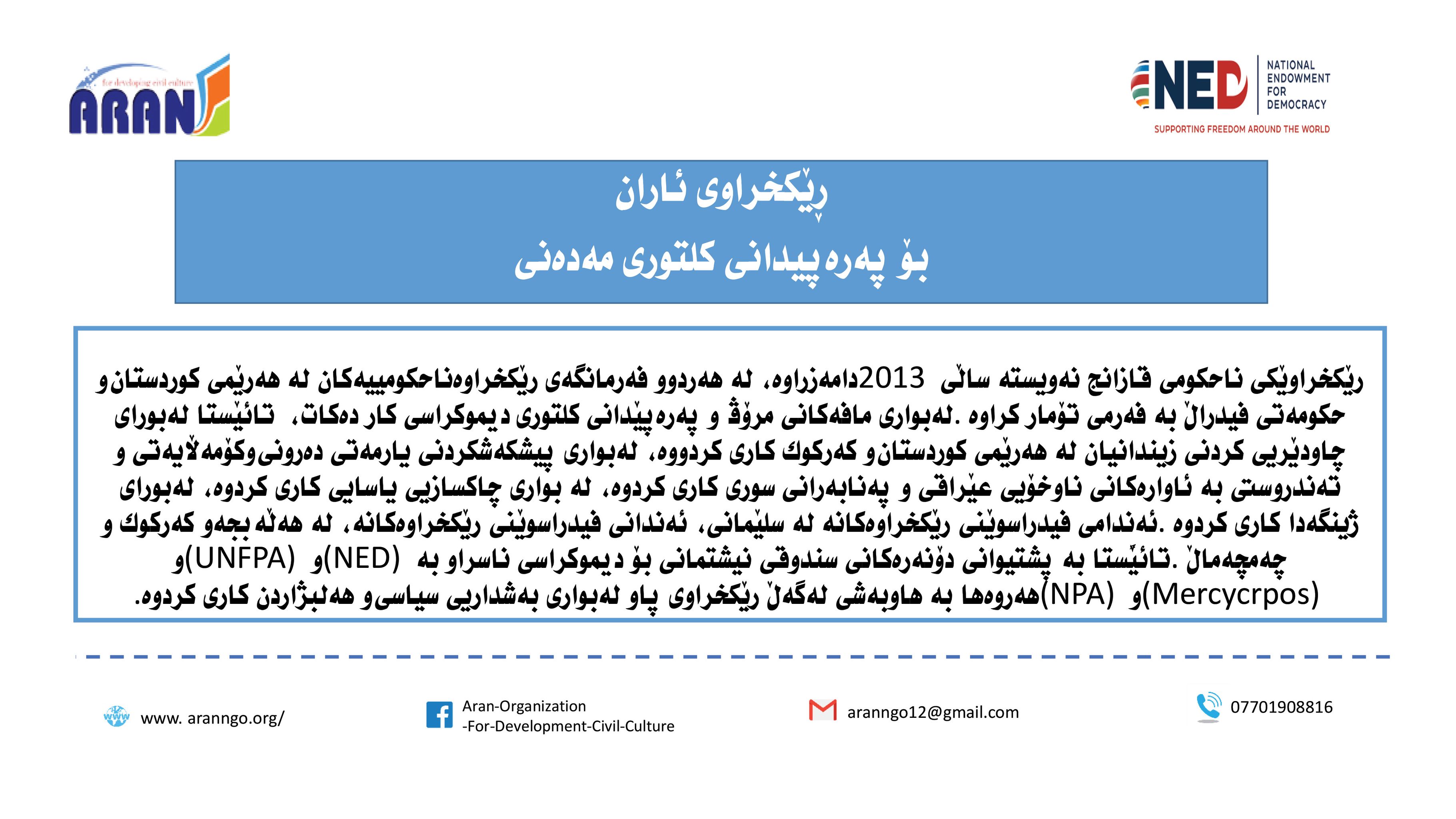 راپۆرتی: رێكخراوی ئاران بۆ پەرەپێدانی كلتوری مەدەنی